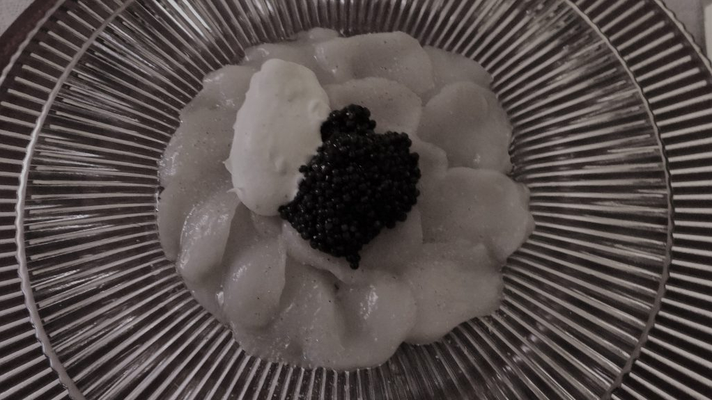 « Carpaccio de coquilles Saint Jacques à la mandarine et au caviar »