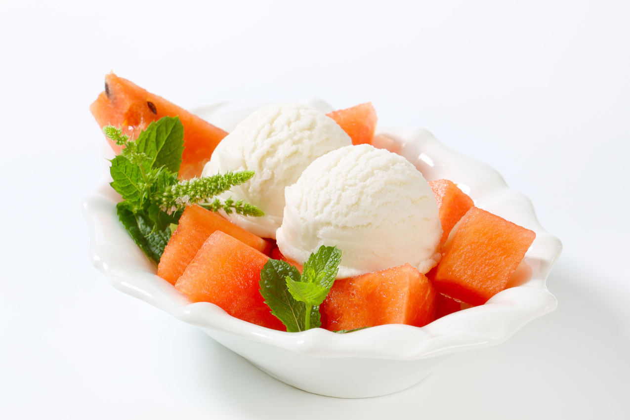 - Mixez la pulpe des melons et le sucre et verez en saucière.