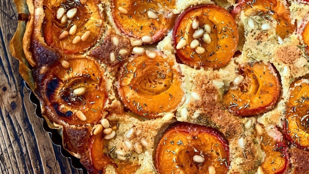 Variante : la tarte aux abricots et à l’amande de Michel Bras. Pâte à fouace, crème frangipane,