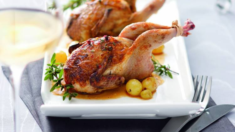 Dresser une caille dans chaque assiette. La napper de sauce.