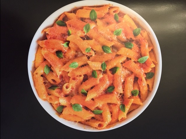 Rouler les penne dans la sauce tomate. Les faire mijoter quelques instants. Beurrer le fond et les bords d’un plat à gratin, y déposer les penne. Parsemer de parmesan râpé et enfourner pendant 20 minutes. Sortir du four et recouvrir de pousses de basilic.
