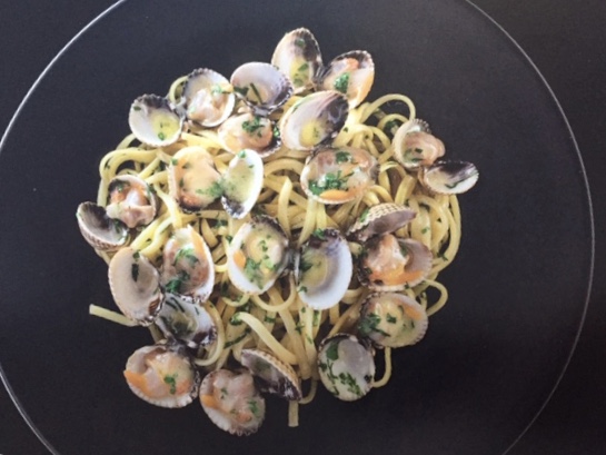 Faire revenir dans une casseroleles coques avec un filet d’huile d’olive, ajouter l’échalote ciselée et le persil haché. Déglacer avec le vin blanc. Ouvrir les coques.