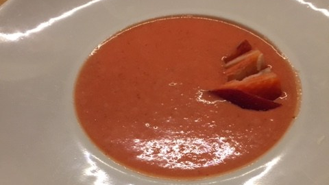 Variante: Gazpacho pícaro de tomates et fraises, Michel Guérard