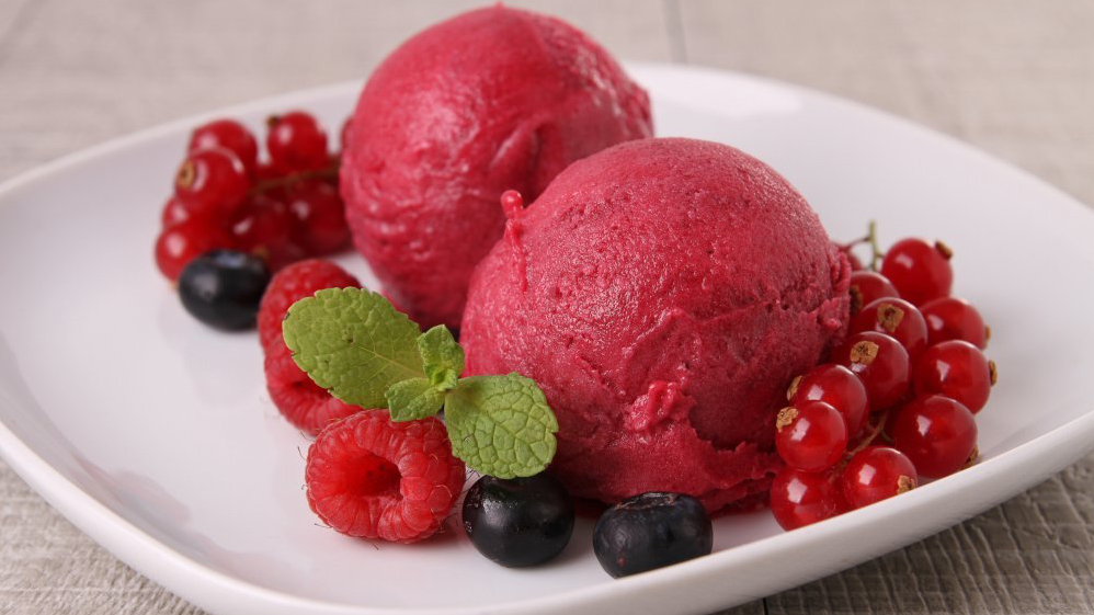 Versez la purée dans la sorbetière et turbinez.