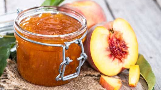 Pressez le citron: vous devez avoir 3 cuillerées à soupe de jus. Ouvrez les pêches, retirez les noyaux; coupez les moitiés en deux, mettez-les dans une terrine. Poudrez les de sucre, ajoutez le jus de citron et mélangez bien. Laissez-les macérer pendant 24 heures. Versez les abricots dans une passoire placée au dessus d’une grande casserole ou d’une bassine en cuivre. Fendez la gousse de vanille, grattez les graines, ajoutez la gousse et les graines puis les amandes d’abricot dans le sirop de macération. Faites cuire ce sirop à feu doux jusqu’à 118°C. Plongez les quartiers de pêche dans ce sirop. Baissez un peu le feu et faites cuire à 106°C, au lissé pendant 18 minutes environ. Laissez la confiture refroidir complètement si vous voulez l’utiliser de suite. Sinon, mettez-la dans les pots; fermez-les immédiatement et retournez-les pendant 24 heures.