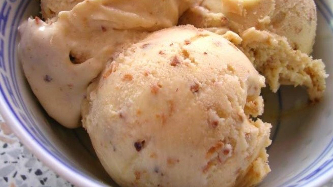 Débarrasser la glace dans un cul de poule. Concasser les noisettes caramélisées. Les ajouter dans la glace. La réserver au congélateur.
