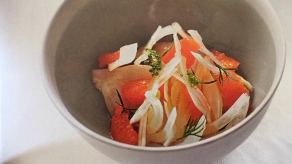 Égouttez les tranches de fenouil, épongez les dans du papier absorbant, mélangez les avec les quartiers de clémentines, assaisonnez avec la vinaigrette moutardée. Dressez dans des bols, décorez avec des pluches et des fleurs d’aneth.