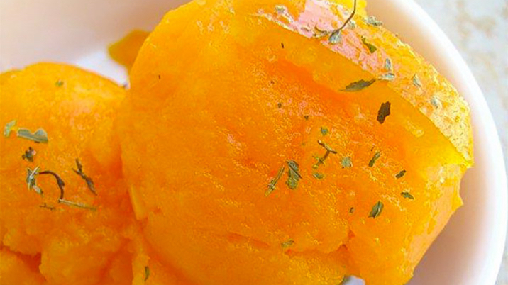 Faites bouillir le lait, la crème et la purée de carottes. Mélanger les jaunes et le sucre, ajouter au mélange précédent. Cuire la crème anglaise à 85°C pendant 3 minutes. Mixer a froid avec les fleurs de capucine. Passer à la sorbetière.