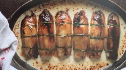 Lire plus "Endive farcie d’abricots secs et de raisins blonds, crème de parmesan"
