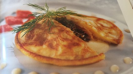 Lire plus "Crèpe parmentière au saumon sauvage et caviar, beurre léger aux zestes de citron"